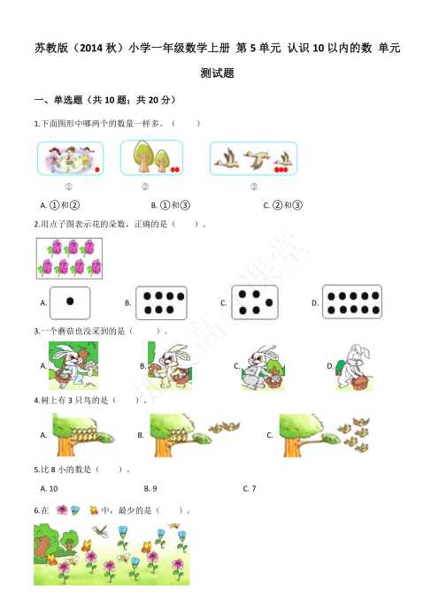 当前位置: 首页一年级一年级数学正文 小学一年级数学上册第5单元试题 认识10以内的数(12页PDF文档)资料下载 声明:本站所有文章,如无特殊说明或标注,均为本站原创发布。任何个人或组织,在未征得本站同意时,禁止复制、盗用、采集、发布本站内容到任何网站、书籍等各类媒体平台。如若本站内容侵犯了原著者的合法权益,可联系我们进行处理。一年级数学数学文档 admin 海报 链接