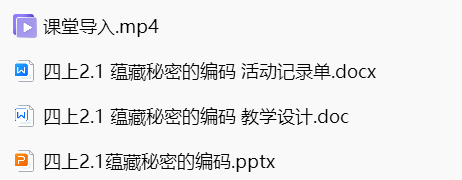 信息科技四上(川教版2025版)2.1蕴藏秘密的编码,包含PPT、教案、活动记录单、课堂视频等资源,可更改,内容如下: