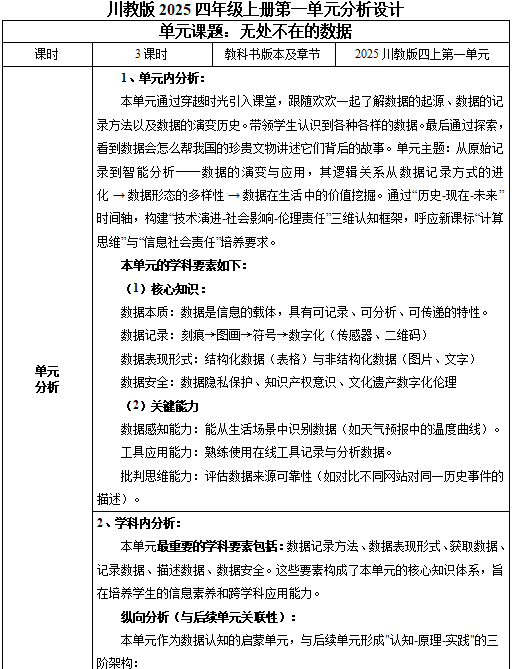 包含单元分析(单元内和学科内横向纵向分析)、学科要素分析、跨学科分析、学情分析、目标分析、任务分析、作业设计、课时分配共8页