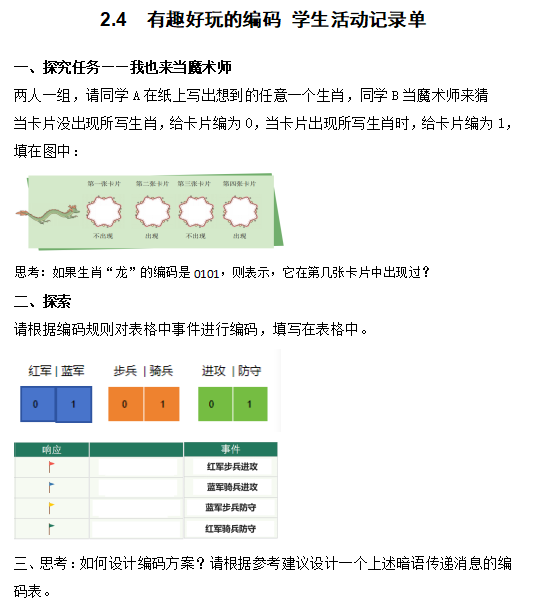 信息科技四上(川教版2025版)2.4有趣好玩的编码,包含PPT、教案、活动记录单资源,可更改,内容如下: